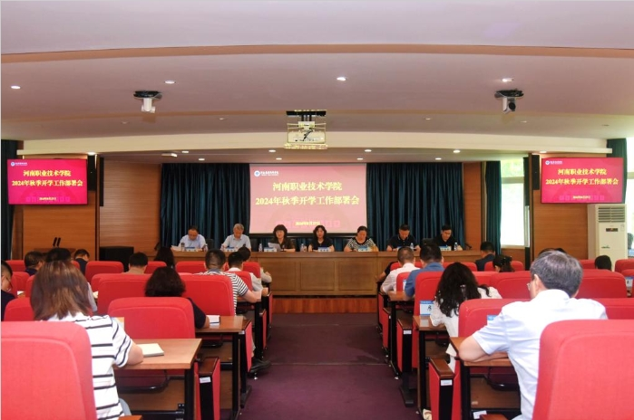 8月27日下午,河南职业技术学院召开2024年秋季开学安全工作部署会,传达全省教育系统秋季开学安全工作会议精神,并对学校开学工作进行安排部署和统筹协调,确保秋季开学工作安全、平稳、有序。校长夏新颜及在校领导班子成员出席会议。各职能部门负责同志,各二级学院党总支书记、院长参会。会议由校党委副书记、工会主席田华主持。