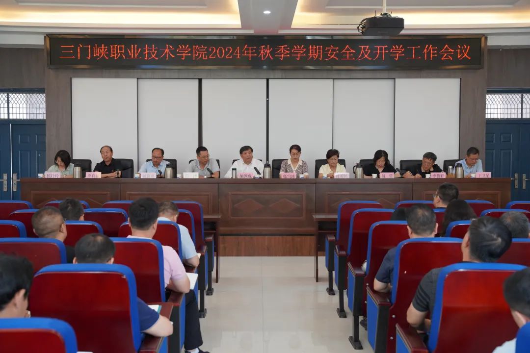 8月29日上午,三门峡职业技术学院召开2024年秋季学期安全及开学工作会议,传达落实全省教育系统秋季开学校园安全工作视频会议精神,对秋季学期开学工作进行安排部署,确保开学工作安全、平稳、有序。党委副书记、院长颉潭成出席会议并讲话,学院党政领导班子成员、各部门负责人、各二级院部党政负责人参加会议。会议由副院长彭博主持。