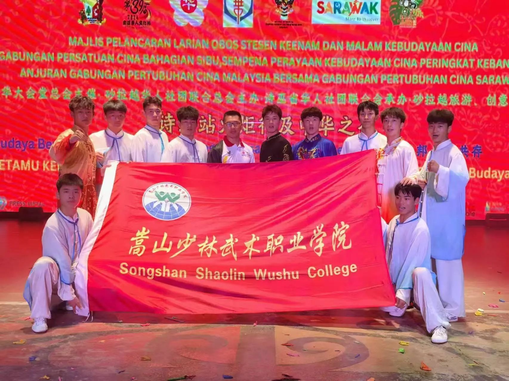 2024年8月8日至13日,嵩山少林武术职业学院武林汉韵表演团受诗巫中华文化艺术协会邀请参加当地的文化盛会婆罗洲文化节,在文化节期间为当地民众奉上了一场气势浩荡的武术盛宴,不仅为婆罗洲文化节增添了独特的风采,也向当地民众展示了中华传统武术的特色与魅力。