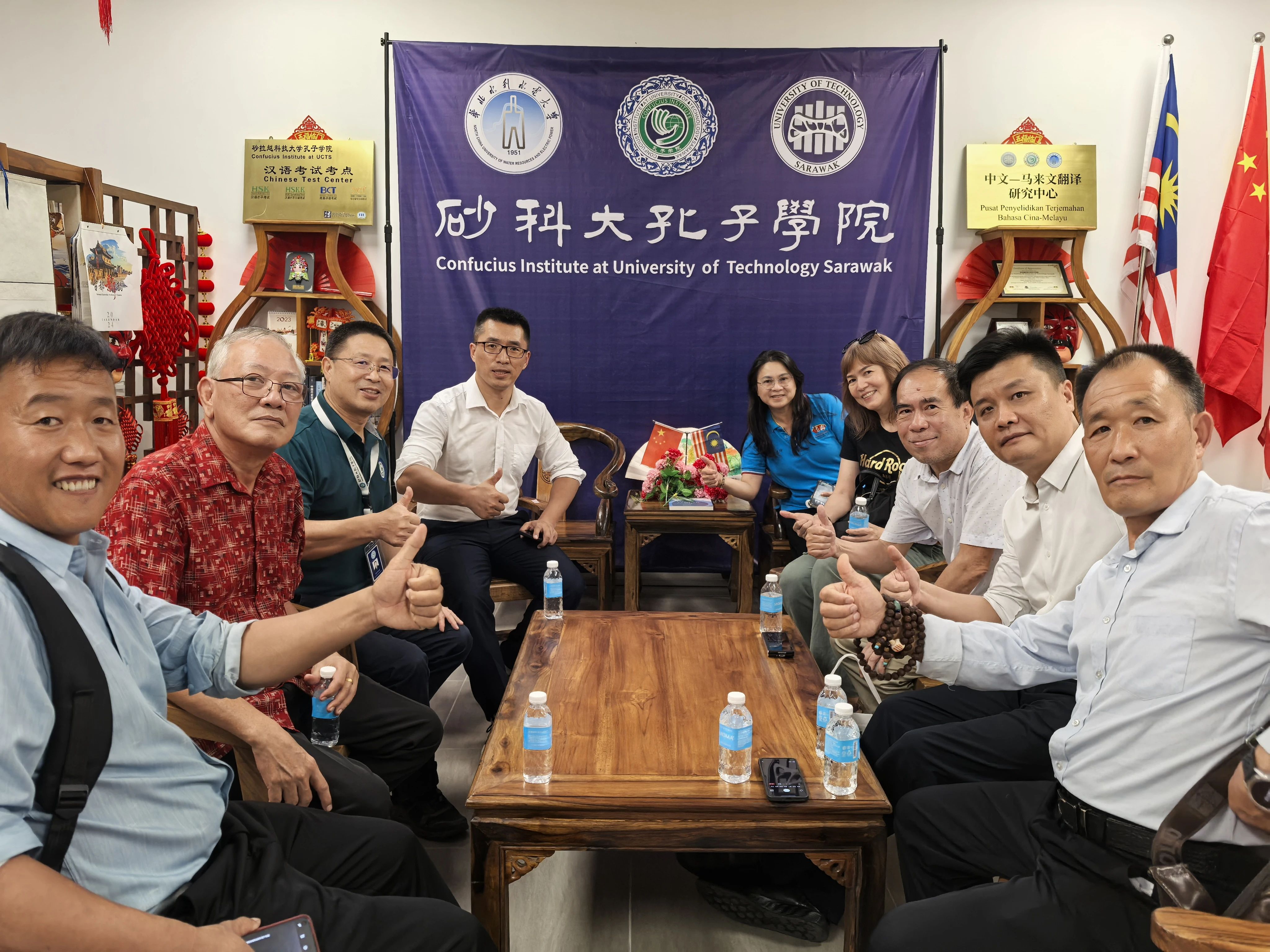8月12日,表演团一行来到马来西亚砂拉越科技大学孔子学院参观交流。在孔院中方院长韩孟奇的带领下,参观了砂科大校园。临别之际,表演团一行将本次武术表演中使用的红缨枪和功夫扇,还有一些文化书籍赠送给砂科大孔院,为孔院的文化展示增添了一份独特的武术色彩。