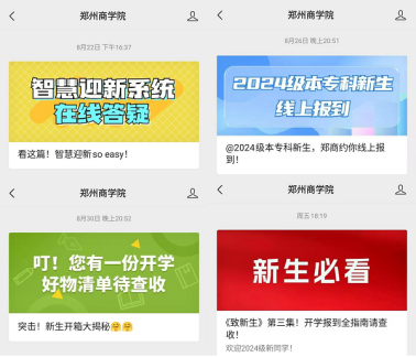 踏入郑商校园,“热烈欢迎2024级新同学”的巨大喷绘矗立在中心广场,“我是郑商人”“欢迎你,郑商‘新’上人”“你好,新同学”……各类宣传牌创意满分,块块展板、条条标语皆是喜气洋洋的迎新氛围。创意合影墙上,既有殷殷的关爱与嘱托,也有展望未来的期盼,不少新生和亲友拍照打卡,纪念成为郑商人的第一天。