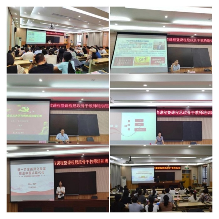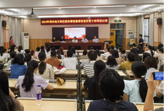 本次培训分思政课骨干教师和课程思政骨干教师两个班次同时进行,邀请了多名省内外思政专家。在思政课骨干教师培训班上,全国高校思政课优秀教学科研团队首席专家、中原文化领军人才、河南科技大学马克思主义学院院长刘振江以《习近平文化思想》为题,对文化的内涵、结构、形态、传播与途径以及功能进行了深入解读。国家社科重大项目首席专家、教育部青年“长江学者”、中国地质大学(武汉)马克思主义学院二级教授、博士生导师韩美群以《现代化文化强国建设的中国逻辑与实践路向》为题,深入解读了我国推进文化强国建设的理论逻辑、历史逻辑和问题逻辑,并细致阐述了中国式现代化新征程上推进文化强国建设的战略策略。郑州地方高校思政课教指委主任、黄河科技学院马克思主义学院院长王振国做了《中国特色社会主义大学与思政课》专题报告,以党史、新中国史、改革开放史和社会主义发展史为主线介绍了中国特色社会主义教育发展道路以及思政课发展目标的一脉相承、与时俱进。全国思政课教学能手、河南省首届思政课教指委委员、郑州升达经贸管理学院马克思主义学院院长程明欣从党和国家事业发展的战略要求、思政课教师的核心素养等方面,深入阐释了《思政课的本质就是讲道理》。国家社科重大项目首席专家、郑州大学马克思主义学院武艳敏教授以《邓小平历史贡献及当代意义》为题,从军事、经济、外交等方面对邓小平的历史贡献和当代意义进行了梳理和阐释。河南省青年理论宣讲专家、郑州市委宣讲团成员、郑州师范学院马克思主义学院副院长范会平围绕党中央的最新要求和会议精神,以《学习贯彻二十届三中全会精神》为题进行了专题报告。