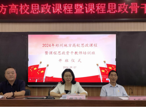为深入学习宣传贯彻党的二十大、二十届三中全会精神和习近平总书记对学校思政课思政课建设作出重要指示,进一步推进郑州地方高校思想政治理论课和课程思政建设,打造郑州地方高校“思政教学名师”,不断提升郑州地方高校“大思政课”建设实效,9月7日至8日,由郑州地方高校思政课教指委主办、郑州幼儿师范高等专科学校承办的郑州地方高校思政课程暨课程思政骨干教师培训班成功举办。参加此次培训的人员为“郑州地方高校第六届思政课教学技能大赛暨第三届郑州地方高校课程思政教学比赛”获奖选手。郑州市教育局高教处处长钟海云、郑州市地方高校思政课教学指导委员会主任、黄河科技学院马克思主义学院院长王振国、郑州幼儿师范高等专科学校副校长张元奎、河南科技大学马克思主义学院院长刘振江出席了开班仪式。开班仪式由郑州地方高校思政课教指委副主任、郑州幼儿师范高等专科学校马克思主义学院院长梁彩霞主持。