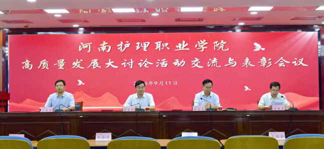 9月11日下午,河南护理职业学院高质量发展大讨论活动交流与表彰会议召开。校党委副书记、院长胡仕坤,党委副书记、工会主席钟会亮,纪委书记王忠伟、副院长黄敬堂出席会议。全体副科级及以上干部、教研室主任及参加征稿活动的教师参会。会议由钟会亮主持。