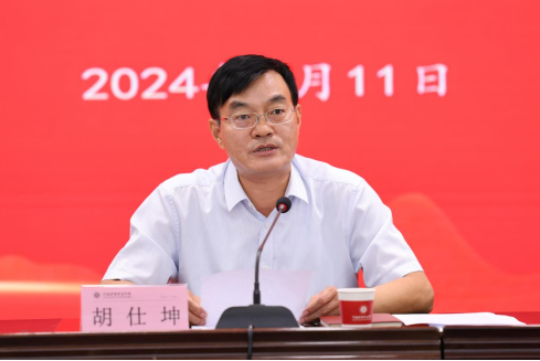 胡仕坤以《坚毅笃行、实干担当--奋力谱写学校高质量发展新篇章》为题发表讲话。