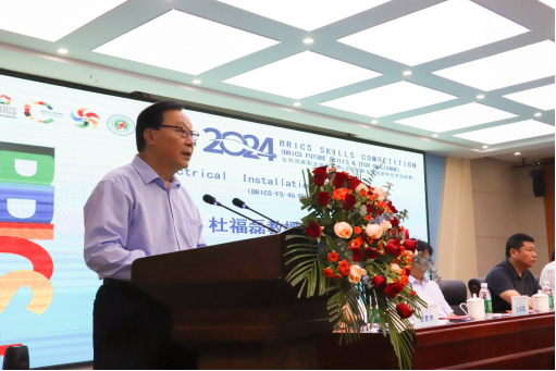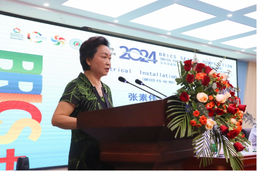 郑州电力职业技术学院校长王海霞宣布2024金砖国家职业技能大赛电气安装赛项全国选拔赛暨国内决赛开幕。