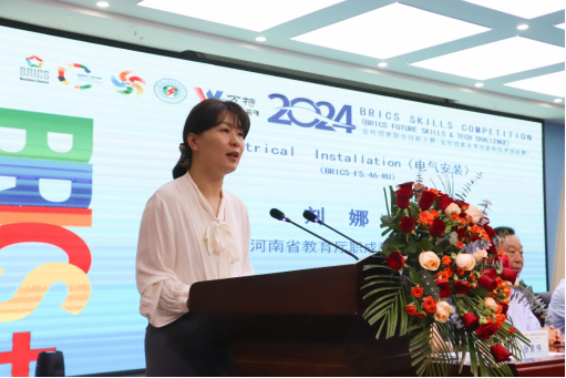 河南省教育厅职成教处副处长刘娜指出,金砖国家职业技能大赛是国际性职业技能竞赛,其广阔的参与度和影响力赢得了社会各界的赞誉,开创了在金砖国家实现产教协同发展、协同创新、协同优化的典范。并表示此次大赛在河南举办,是难得的学习经验,是加强交流、取长补短、加深友谊的机会,必将会进一步弘扬精益求精的工匠精神,营造尊重劳动、崇尚技能的浓厚氛围,发掘和培养更多优秀的大国工匠、能工巧匠,造就更多爱岗敬业、技术精湛、勇于创新的技术技能人才起到积极的促进作用。刘娜强调,希望各位参赛选手在比赛中精益求精、奋勇争先、赛出风格、赛出水平,充分展现职业院校师生良好的时代风采和风貌。希望我省职业院校以此次大赛为契机,与兄弟省份院校加强交流、相互学习、增进友谊、共同提高,为培养出数量更多、质量更高、技能更强的高素质人才积累经验打实基础。