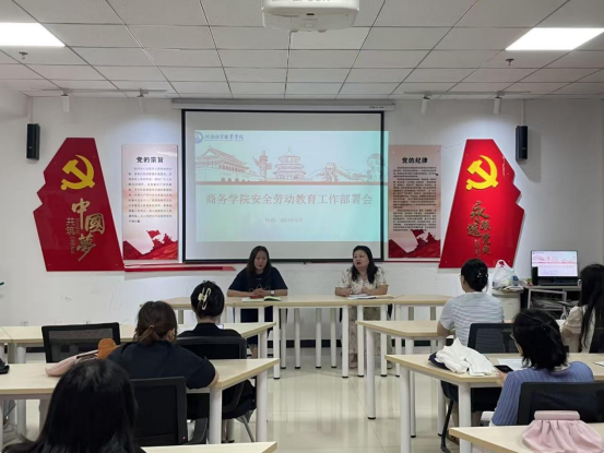 活动以安全劳动教育工作部署会的召开为开端,商务学院党总支书记宋文珺和副书记李明扬及23级全体辅导员老师参加了会议。宋文珺在会上向老师们强调了劳动教育在立德树人方面的重要作用,对安全和劳动教育工作的开展方向作出了明确规定,要求各班辅导员做好安全和劳动教育的动员工作。随后,学院召开“大家讲”动员会,会上李明扬通过“书记讲”,阐述了学校开展安全和劳动教育的具体目标和当前面临的任务,强调了辅导员在推动劳动教育实施过程中的角色和责任。接着,各班陆续开展安全和劳动教育“辅导员讲”专题会议,倡导学生要深入学习劳动精神、劳模精神和工匠精神,号召学生积极主动地参与到本次安全和劳动教育实践当中。学院专职学工人员深入班级开展安全与劳动教育“学工讲”活动,向同学们强调了劳动教育在树德、增志和强体方面的重要作用,倡导学生要树立崇尚劳动、尊重劳动的良好风尚。同时,“青言青语”宣讲团成员合理利用课前思政等形式,面向学院学生开展安全和劳动教育“宣讲团讲”,向学生具体介绍了学院安全和劳动教育的课程安排、岗位设置与纪律要求。