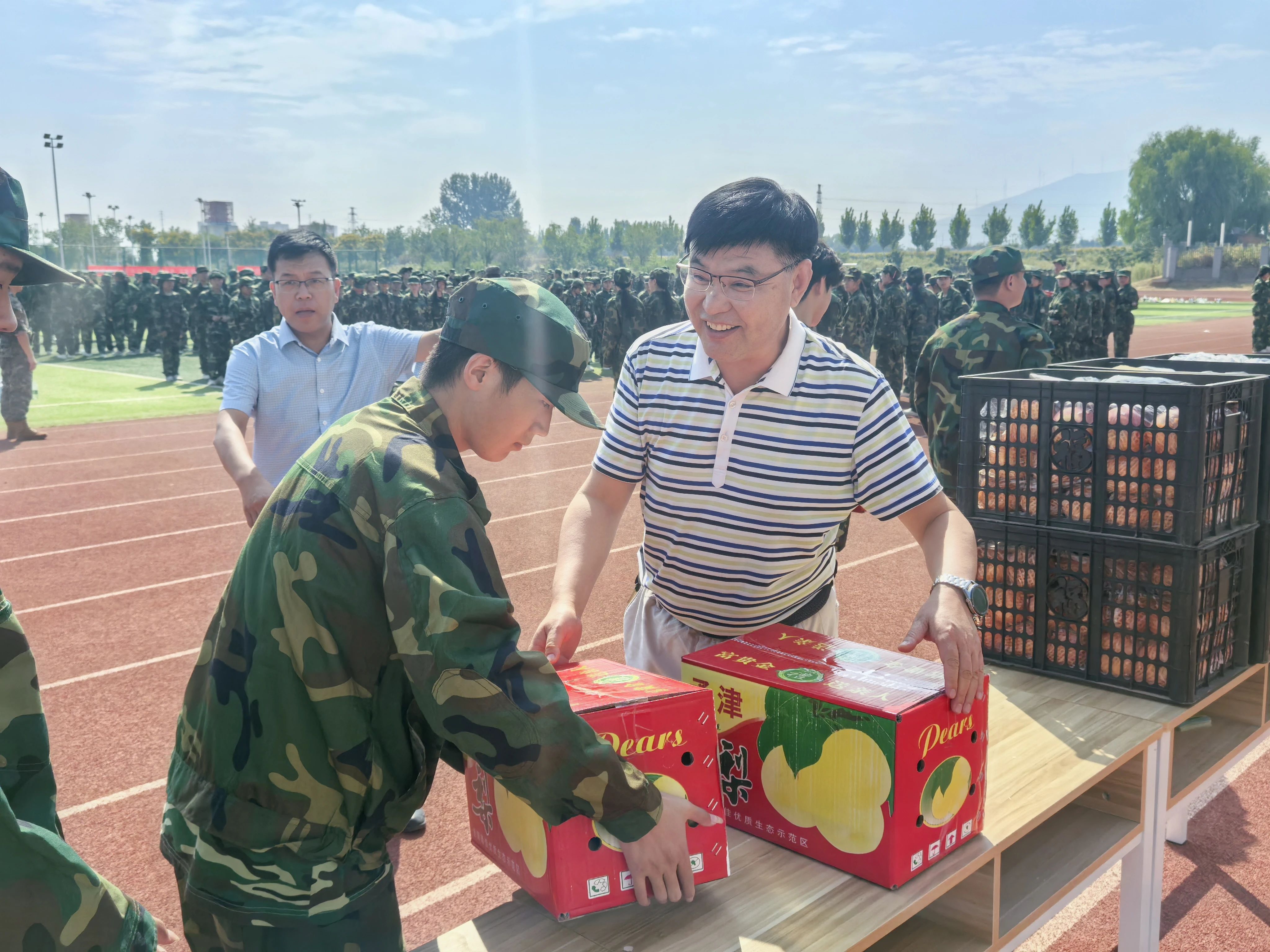 秋风送爽,丹桂飘香。9月17日上午,适逢中秋佳节,满怀对2024级新生的关怀与祝福,洛阳文化旅游职业学院校长张家森、副校长聂京涛代表学校领导班子分别深入伊滨校区和老城校区军训现场,向辛勤指导的教官们表达感谢,亲切问询军训的进展情况和新生们的适应状况,并为正在接受军事训练的新生们送去月饼和新鲜水果,让远离家乡的新同学们在军训的艰苦与汗水中也能感受到家的温暖与节日的喜悦。
