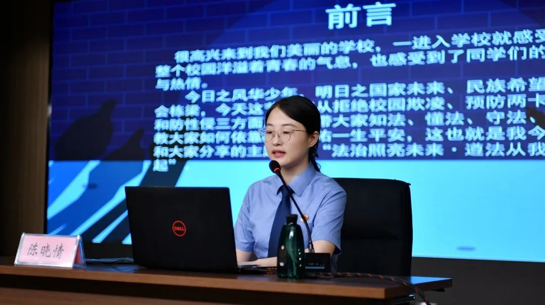 为提升学生法治意识,加强校园法治建设,9月20日,濮阳医学高等专科学校在易明楼报告厅举办“法治照亮未来·遵法从我做起”法制讲座,本次讲座特邀市华龙区人民检察院未成年人检察办公室干警陈晓情主讲。市人民检察院未检办主任赵志超、副主任陈婷出席。濮阳医学高等专科学校师生代表500余人参加。本次讲座钉钉直播公开课同步进行。