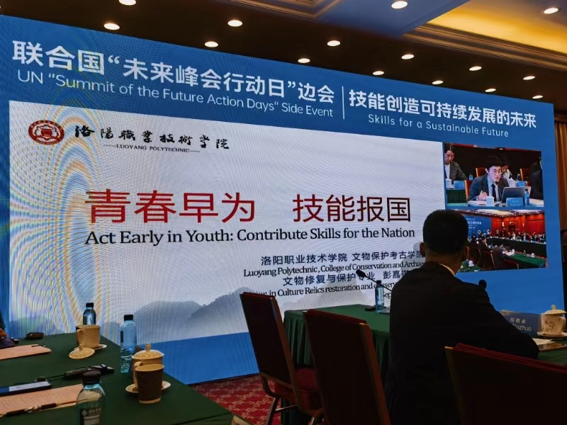 日前,联合国“未来峰会行动日”边会——“技能创造可持续发展的未来”“一带一路”职业教育对话会在北京举行。作为此次边会邀请的3名全球青年技能人才代表之一,洛阳职业技术学院文物修复与保护专业学子彭嘉祺作主旨发言,向世界发出了文化遗产保护的中国声音。