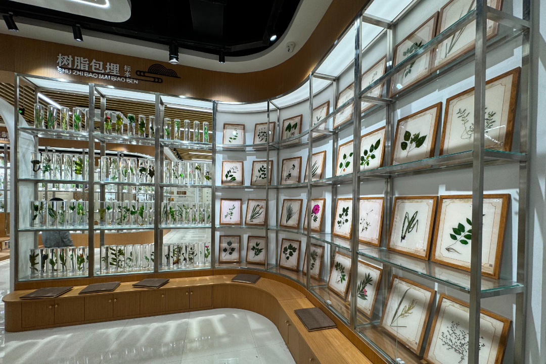 在中医药文化展区杏林史诗板块,似缓缓翻开了一本史诗级巨著,感受着中医药文化的深厚底蕴和民族智慧。其中,传统与现代智能技术结合的针灸铜人,让参观者体验人体经络腧穴的奇妙。龙都春暖板块,濮阳中医药文化随时间轴线熠熠闪光。在中药标本展区,标本的陈列合理分类、种类齐全,从浸制标本、腊叶标本、药典标本、真伪鉴别标本、道地药材、妊娠禁忌及有毒标本、十八反十九畏标本、配伍对比标本、药食同源标本等,内容琳琅满目、丰富多样。中医药图书展区,经典的中医药书籍与丰富现代化的云书馆交相呼应,彰显着中医药的厚载传承和知识浩瀚。