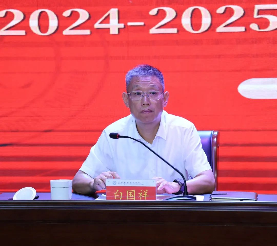 会上,白国祥副校长简要回顾了学校2023—2024学年的教学、竞赛及教科研情况,鼓励大家要树立信心、砥砺前行。他指出,新学年,新征程,学校将积极按照教育部和省教育厅关于抓好“金专业”“金课程”“金教材”“金教师”“金实训”等“五金建设”的部署,重点抓好专业优化、课程提质、能力提升、模式创新、产教融合和社会服务等方面的综合改革,全面提高河南物流职业学院的办学质量和品牌影响力。