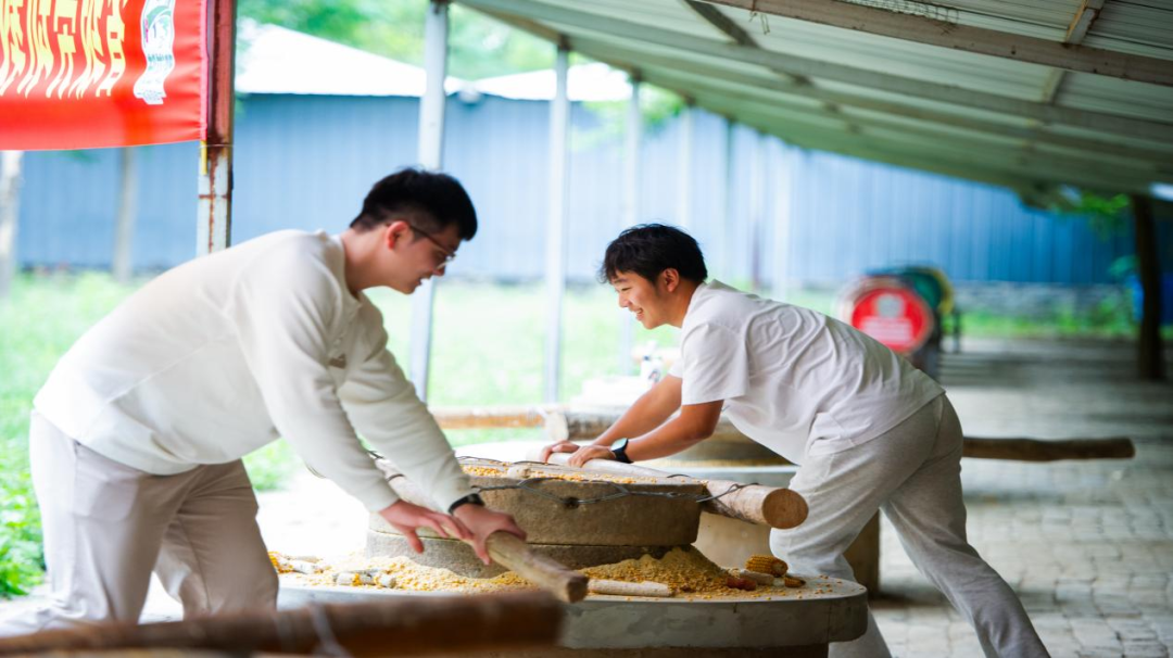 教育学院23小教本8班刘慧琳学生讲到:“这是我第一次见到和使用石磨,教练让我们以小组的形式进行比赛,我看到一粒粒小小的玉米在石磨中变成了玉米面,感叹其中的神奇。同时我们也了解到了石磨的历史。”
