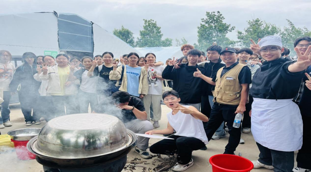 在“美食制作”环节,学生们分组完成家常菜、河南烩面、胡辣汤、烤红薯、煮花生等美食制作,在家常菜学习制作中,学生需要根据采摘的蔬菜,在有限的时间展示他们的烹饪技艺。学生认真学习美食制作方法与技巧,在洗菜、切菜、拌菜等环节上分工明确,通力配合,最终展示自己的劳动成果。