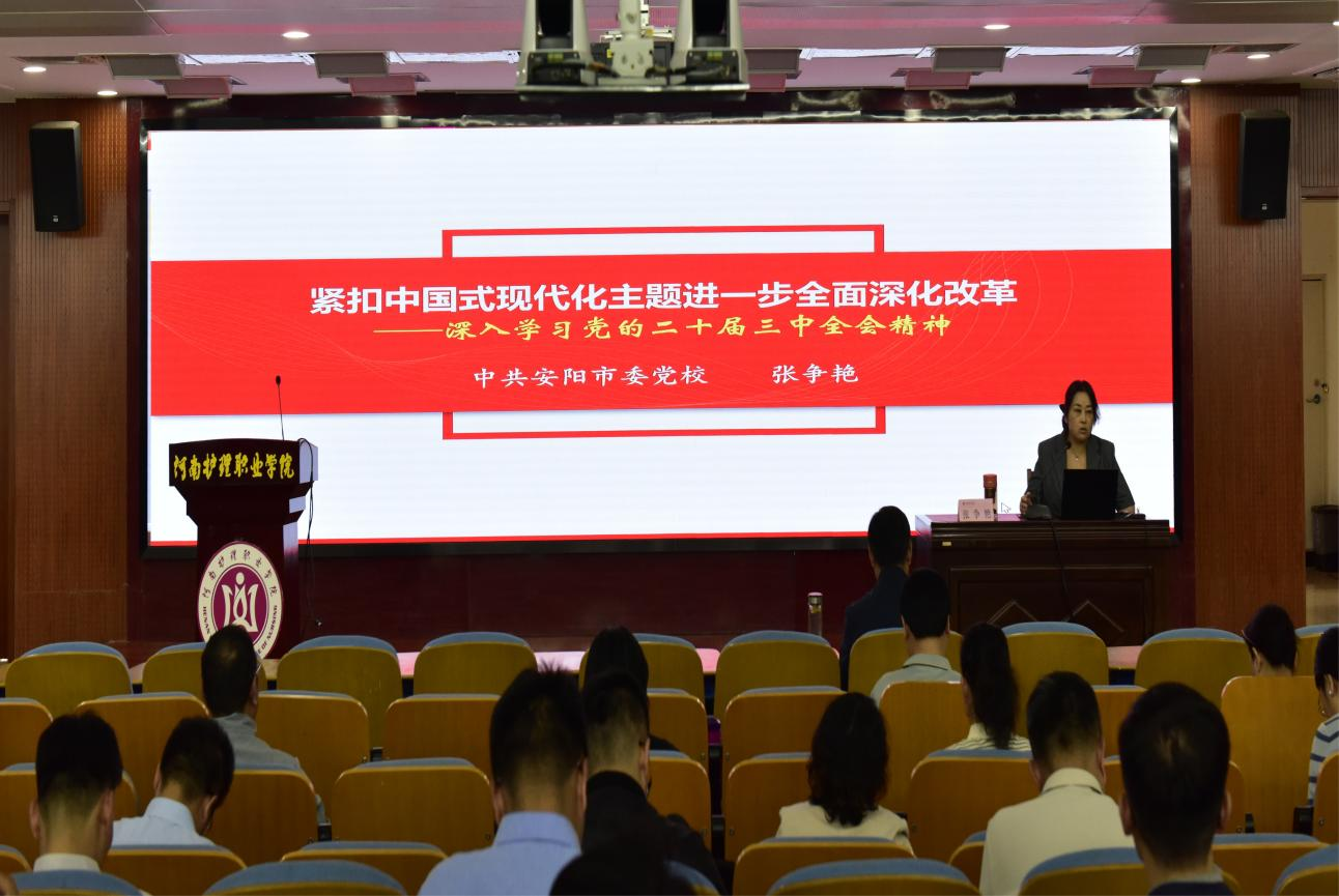 培训采取线上线下相结合方式开展,学校特邀安阳市委党校张争艳教授作专题辅导讲座,并组织研讨交流。学员代表立足自身岗位职责,结合本次培训内容,就如何让党的二十届三中全会精神走进课堂,如何做好党务工作、学生工作和纪检监察等工作进行深入交流,提出新思路、探索新办法,力求推动学校各项工作取得高质量发展。