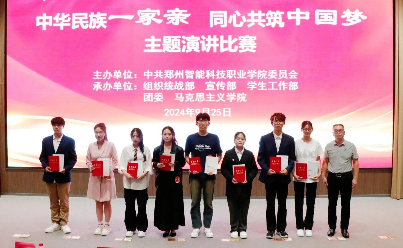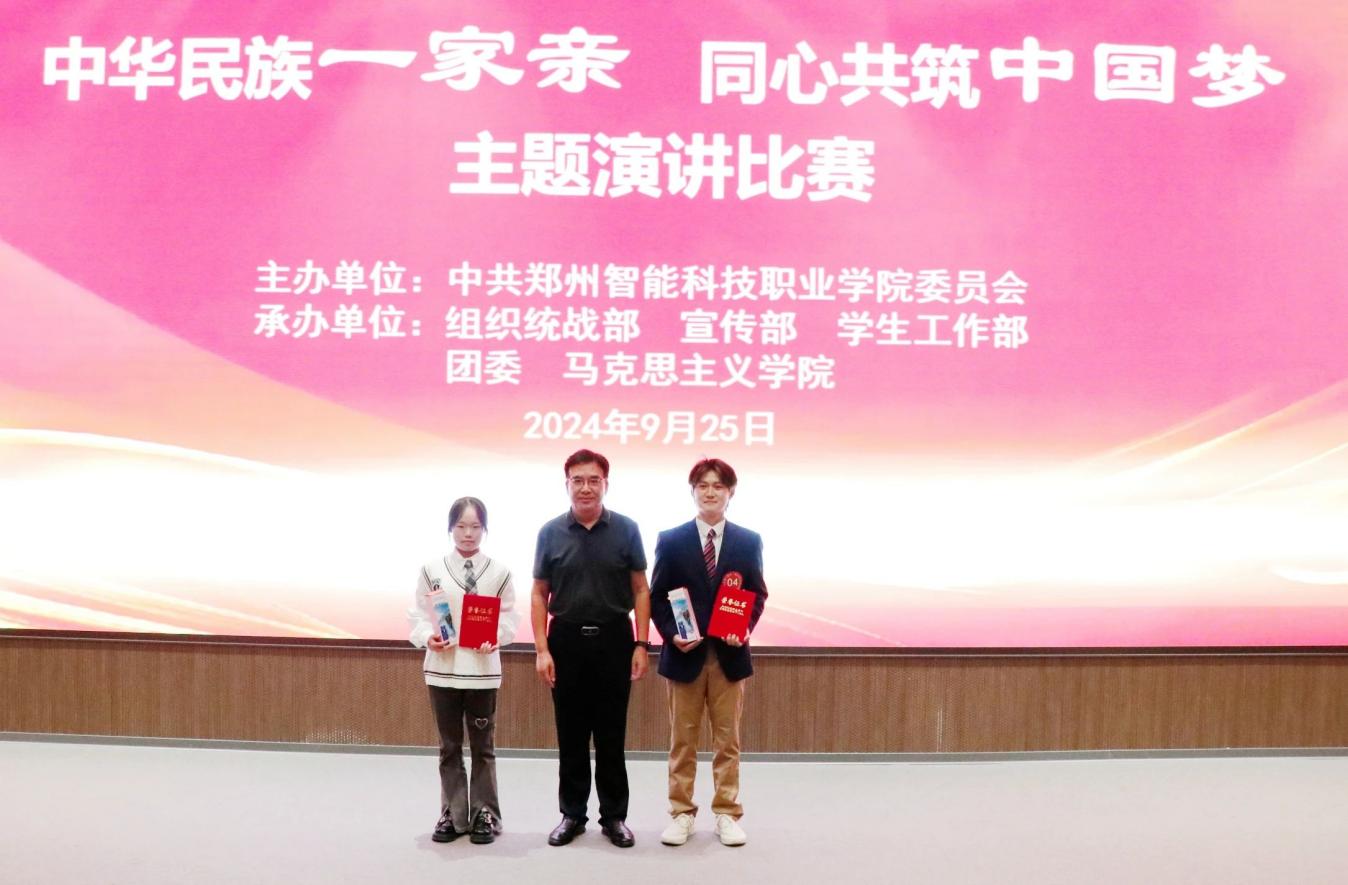 为深入学习贯彻党的二十大和二十届三中全会精神,全面贯彻落实习近平总书记关于加强和改进民族工作的重要思想,铸牢中华民族共同体意识,喜迎新中国成立75周年,9月25日下午,郑州智能科技职业学院在多闻厅二楼报告厅举办“中华民族一家亲 同心共筑中国梦”主题演讲比赛。学校党委委员、副校长张保来和各单位主要负责人及部分学生代表参加。