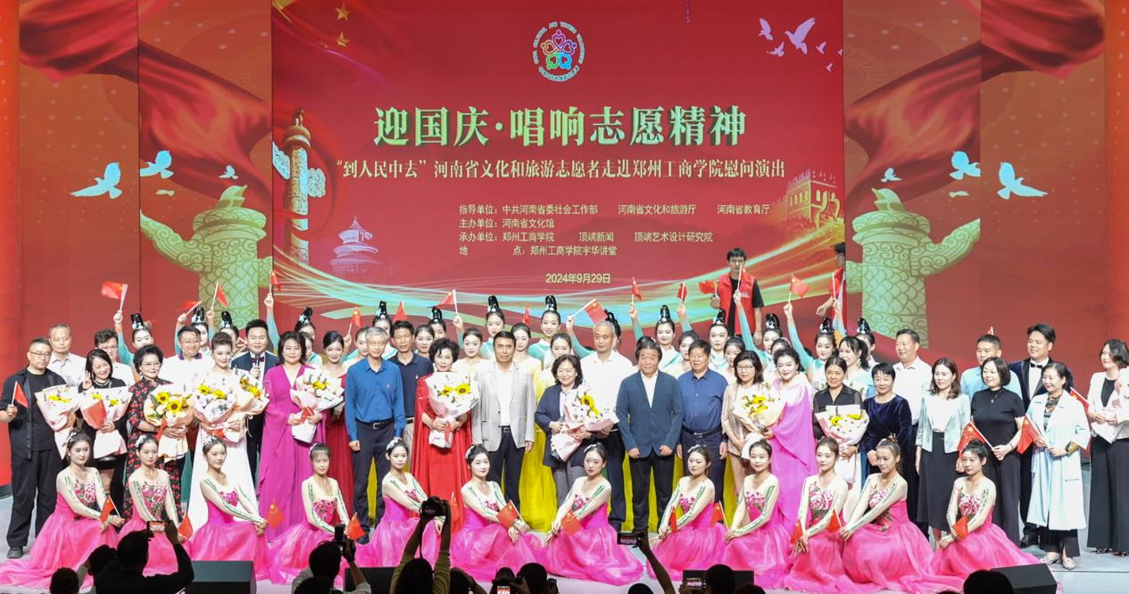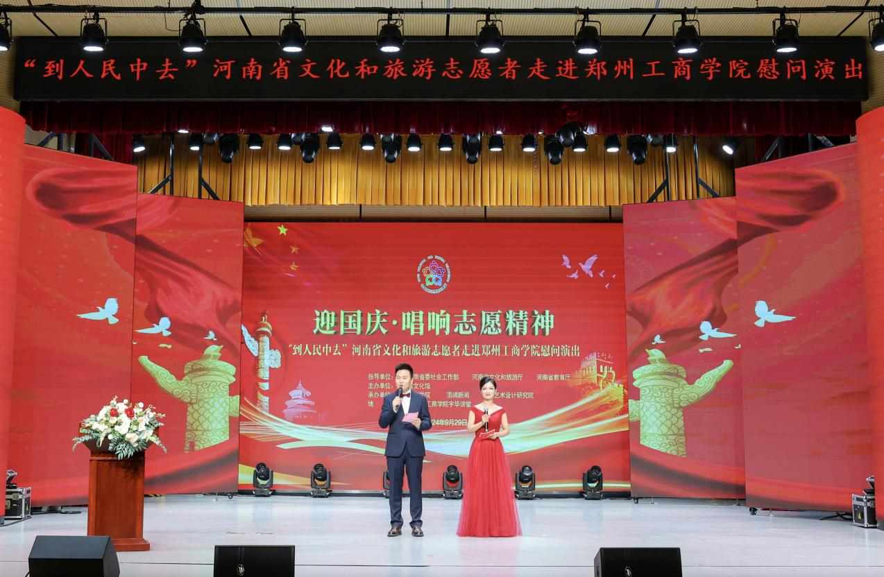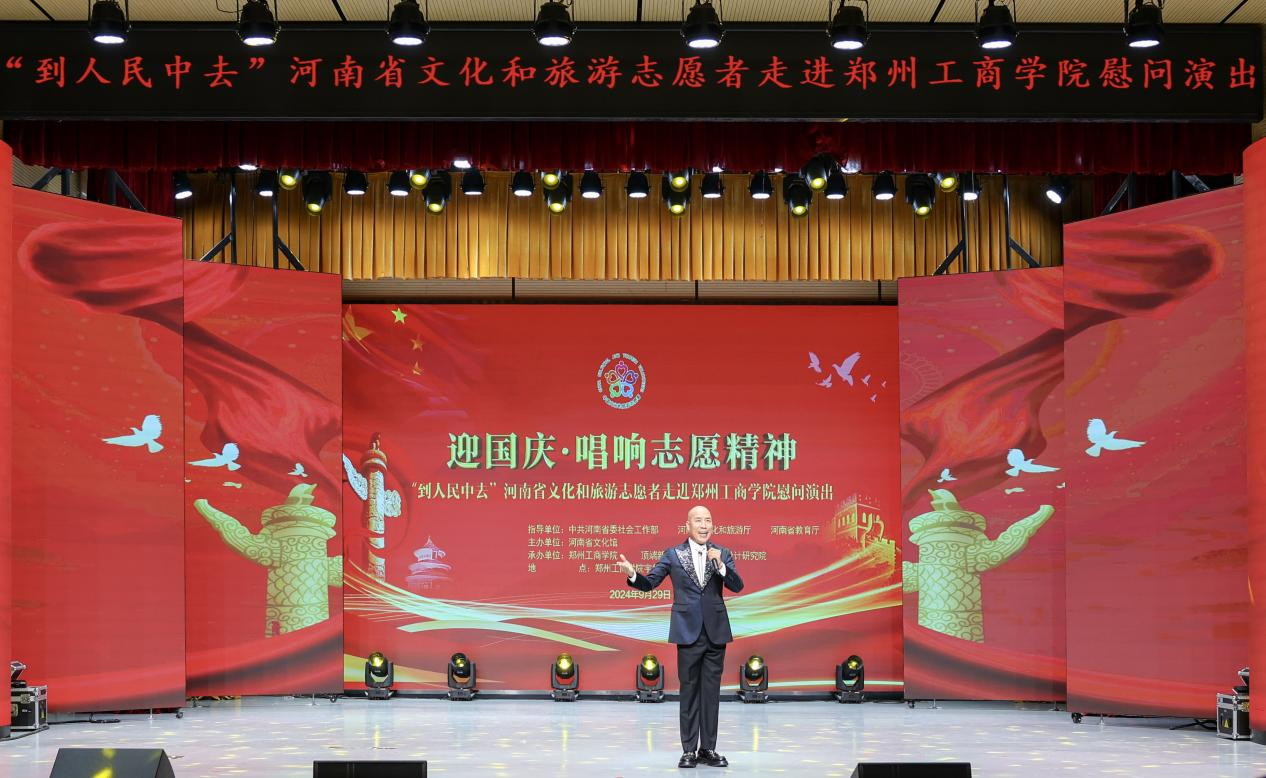 9月29日,由中共河南省委社会工作部、河南省文化和旅游厅、河南省教育厅指导,河南省文化馆主办的“迎国庆·唱响志愿精神‘到人民中去’河南省文化和旅游志愿者走进高校系列活动”首场演出在郑州工商学院宇华讲堂隆重举行。此次活动旨在庆祝新中国成立75周年,深入贯彻落实习近平总书记关于志愿服务重要论述和系列重要指示和批示精神,大力弘扬“奉献、友爱、互助、进步”志愿服务精神,激发广大志愿者坚定理想信念、厚植家国情怀、播撒爱心善意、体现责任担当,展示我省各行业、各单位志愿服务良好形象。活动现场气氛热烈,充满了浓厚的节日氛围与青春活力。