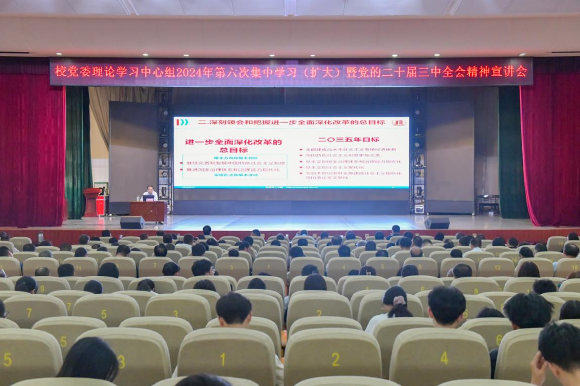 葛晨光紧扣党的二十届三中全会精神的核心要义,围绕习近平总书记在党的二十届三中全会上的重要讲话精神和全会《决定》,以“新征程上进一步全面深化改革的行动纲领——党的二十届三中全会精神导读”为题,从“深刻领会和把握进一步全面深化改革的重要意义、总体目标、重大举措、实践要求”四个方面对全会精神进行了系统阐释。重点解读了全会明确的“七个聚焦”的改革目标、“六个坚持”的重大原则、“十五个方面”的重要部署,回顾了学校改革发展历程,分析了目前学校改革发展的重点、难点以及面临的发展形势和努力方向,为师生深入学习领会贯彻好全会精神作了一场深刻的理论辅导。