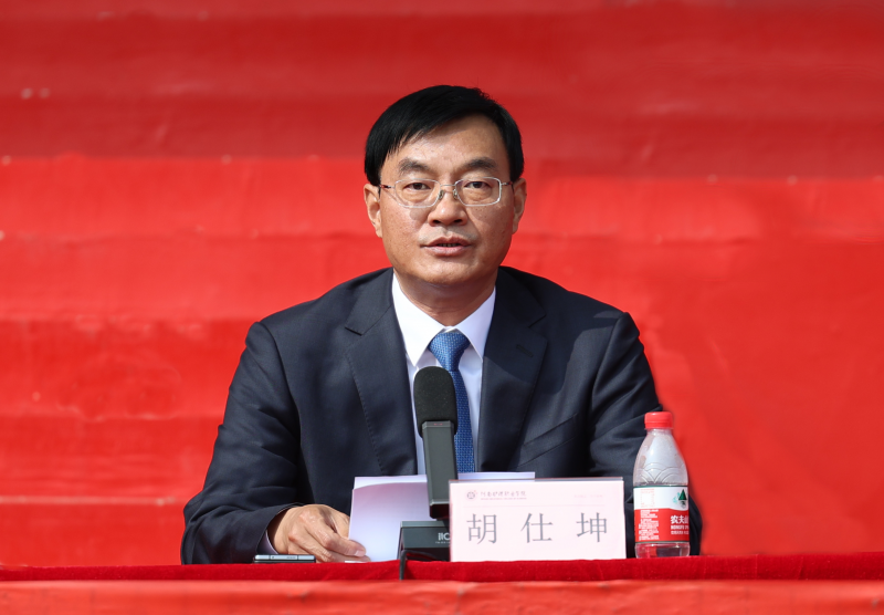 党委副书记、院长胡仕坤以《匠心独运攀高峰 技能卓越创未来 勇担进一步全面深化改革时代使命》为题作总结讲话。胡仕坤代表学校全体师生,向承训全体教官,表示衷心的感谢!向参与、组织本次军训工作的各位教师,表示诚挚的慰问!向获得荣誉的集体和个人,表示热烈的祝贺!大会上,他向大家介绍了学校73年来的发展历程和取得的辉煌成就,鼓励新一代河护人继续弘扬河护精神,厚植爱国情怀,磨练坚强意志,塑造精彩人生。