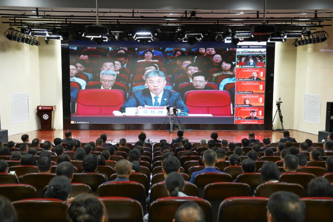 10月11日,河南财经政法大学在郑东校区召开本科教育教学审核评估启动会,会议以线上线下相结合的方式进行。