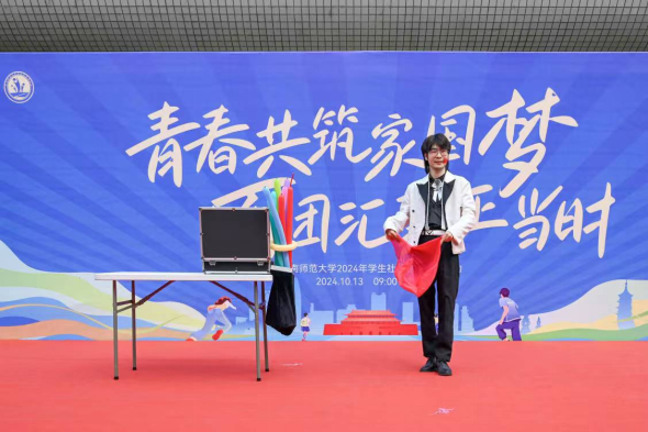 “置身于百团大战活动现场,我仿佛踏入了一个充满惊喜与活力的奇妙集市。”2024 级教育学部新生仲心洁兴奋地说道。在体验了不同社团带来的沉浸式活动后,她选择加入了自己感兴趣的魔术社。“我希望像魔术师一样,用双手创造奇迹,给周围的人带来欢乐与惊喜。”