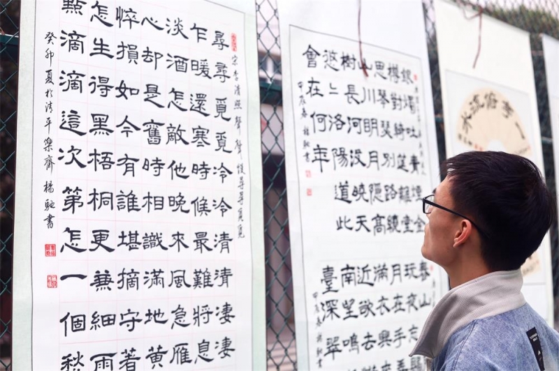 本次展会共展出百余件诗词与书法作品。作品主要选取唐宋诗词经典之作、近现代伟人经典诗词以及自创诗词,采用扇面、对联、中堂、榜书等形式,运用“真草隶篆行”五种字体书写,内容丰富、形式多样,成为校友与母校深厚情谊与共同成长的生动写照。