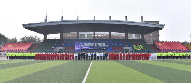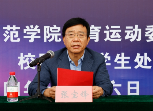 张宝锋致辞。他深刻地阐明了本次活动的多重主旨。一是通过实际行动,表达对祖国盛世华诞的礼赞和对祖国繁荣昌盛祝福;二是传承弘扬中华优秀传统文化,丰富南阳师院校园体育活动;三是体现南阳师范学院始终如一地贯彻党的教育方针,把学生的全面健康发展与体育教育工作置于重要位置。张宝锋进一步指出,学校体育教育和文化活动不仅是增强学生体质的重要手段,更是实现立德树人根本任务的基础性工程。