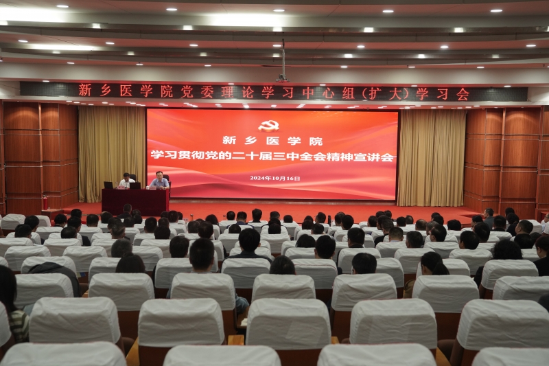 为全面深入学习领会党的二十届三中全会精神,引导广大干部师生深刻领会全会的精神实质和丰富内涵,扎实推进学习宣传贯彻工作,10月16日下午,新乡医学院举办校党委理论学习中心组(扩大)学习会。省委宣讲团成员、河南大学党委书记季波教授作学习贯彻党的二十届三中全会精神辅导报告。该校党委理论学习中心组成员、全体处级干部以及马克思主义学院师生共同聆听报告。学校党委书记任文杰主持报告会。