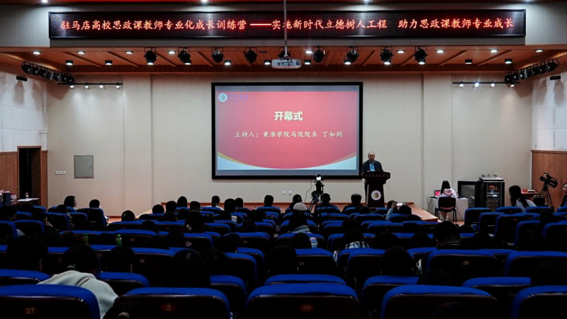 为深入贯彻落实习近平总书记关于高校思政课建设的重要讲话精神,提高驻马店高校思政课教师教学能力,扎实推进时代新人铸魂工程,10月20日下午,驻马店高校思政课教师专业化成长训练营在黄淮学院九号楼报告厅开营。黄淮学院党委副书记、工会主席曹忠义出席,马克思主义学院院长丁如剑主持启动仪式。