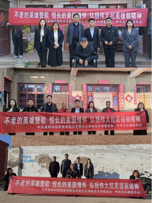 2024年10月25日是抗美援朝74周年纪念日,为深入学习抗美援朝战争的光辉历史,更好地继承和弘扬抗美援朝精神,领会其现实意义,洛阳科技职业学院马克思主义学院党总支及师生代表与中共五头镇委员会开启校地合作,支部共建活动,慰问抗美援朝老兵,致敬“最可爱的人”。