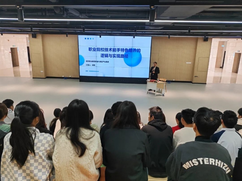 报告会上,邓辉结合自身成长经历,从技术能手培养与产业需求的契合、人才成长的逻辑、教育创新、课程体系建设、师资队伍优化、产教深度融合、技能大赛和创新创业活动、评价体系建设七个方面阐述了职业院校如何促进技术能手的培养,并与现场师生进行互动交流。会后,邓辉与该校创新创业学院99℃创客空间师生团队进行了深入交流。