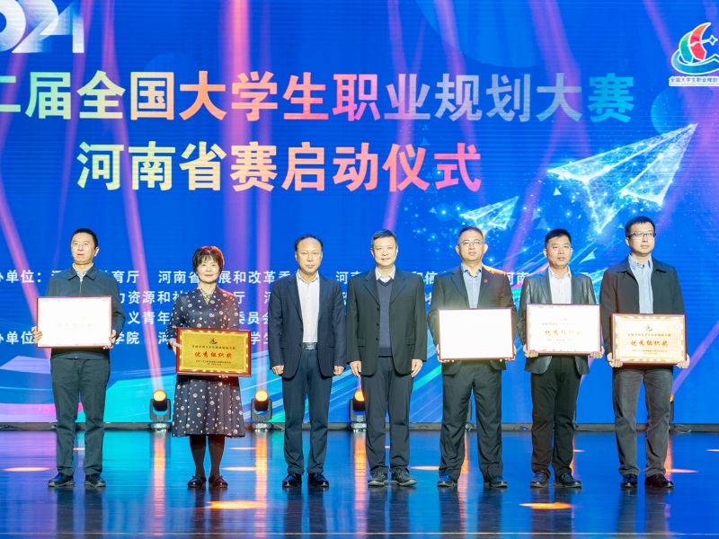 启动仪式上,与会领导为获得第一届全国大学生职业规划大赛金奖、银奖、铜奖的获奖师生和优秀组织奖的获奖高校颁奖,并共同启动“第二届全国大学生职业规划大赛河南省赛”活动。