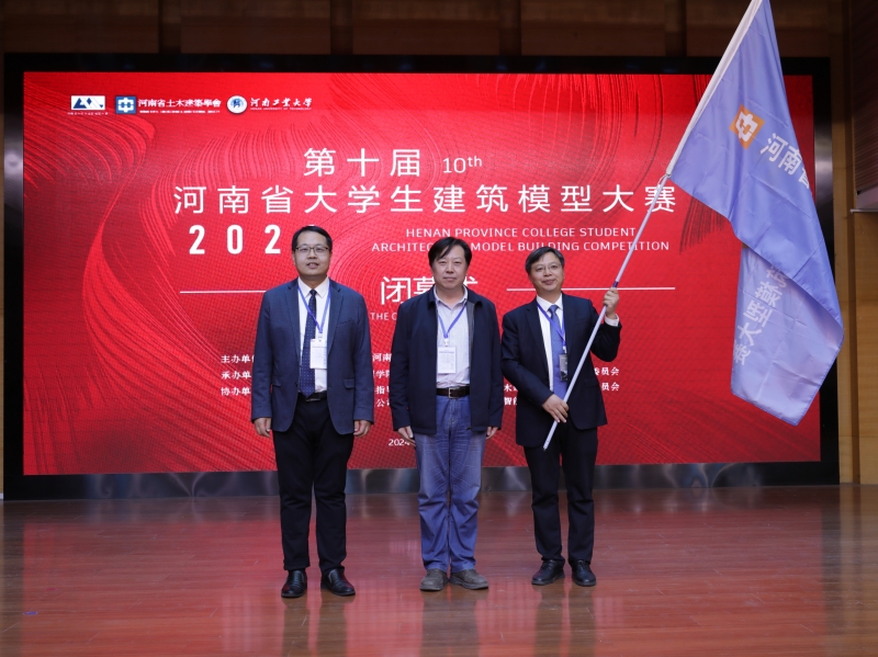 闭幕式上,河南省土木建筑学会秘书长王爱菊教授致闭幕词。她对本次比赛给予高度评价,并向参会的老师们和同学们致以诚挚的祝贺。最后,举行了赛旗交接仪式,下届大赛将由商丘师范学院承办。