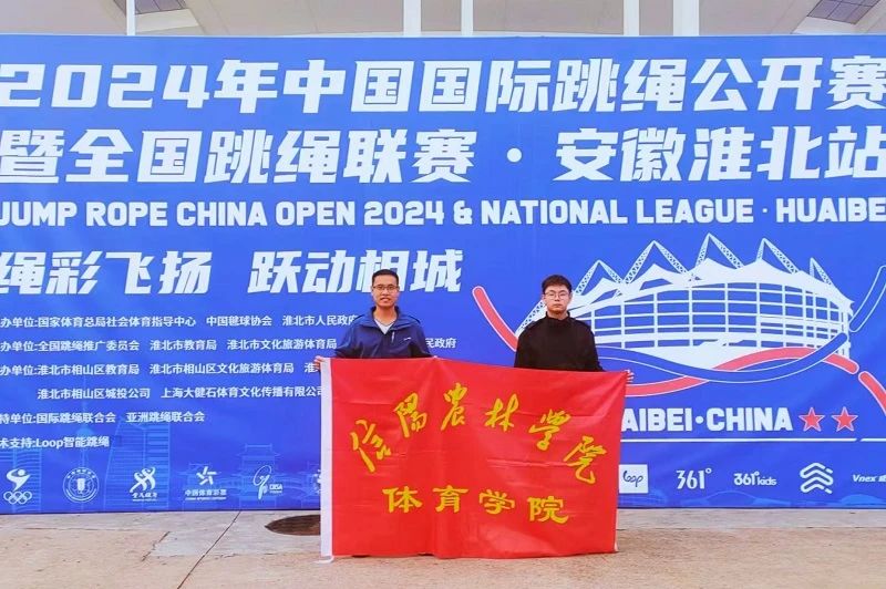 10月23日至28日,2024年中国国际跳绳公开赛在淮北市体育馆举行,信阳农林学院体育学院休闲体育专业学生张柏鑫,获连续三摇跳季军和16岁以上男子组3分钟单摇跳第六名的好成绩。