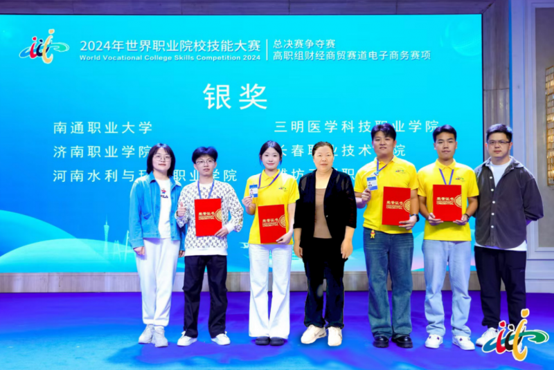 10月25日—27日,2024年世界职业院校技能大赛争夺赛高职组财经商贸赛道“电子商务”赛项在广东科学技术职业学院举行,来自全国32个省、自治区、直辖市的63支队伍共252名选手参加比赛。经过两天的激烈角逐,河南水利与环境职业学院经济管理系教师方艺璇、信息工程系教师沙昉奕指导的,由经济管理系学生宋乃道、陈庆琪、李高飞、耿宇航组成的竞赛团队,凭借出色的综合职业素养和过硬的专业操作技能斩获大赛银奖。这是学校首次在国赛财经商贸赛道中获得奖项,首赛即获银奖,取得了重要突破。