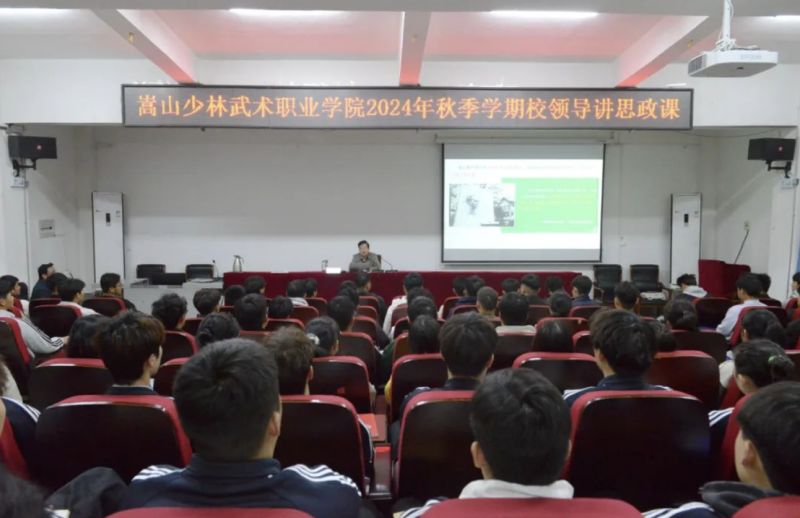 为深入学习贯彻党的二十届三中全会、全国教育大会及习近平总书记对学校思政课建设作出的重要指示精神,不断加强和改进新时代学校思想政治教育,10月31日下午,嵩山少林武术职业学院党委书记田逸以《如何走好人生之路》为题,为220余名新生讲授了一堂深刻、生动、精彩的思政课。