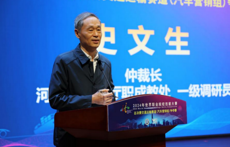 10月30日上午,2024 年世界职业院校技能大赛总决赛交通运输赛道汽车营销组争夺赛在河南交通职业技术学院闭赛。大赛仲裁长、河南省教育厅职业教育与成人教育处一级调研员史文生,大赛裁判长、武汉城市职业学院教授张红英,争夺赛河南赛区承办校赛事组委会副主任、河南交通职业技术学院院长焦宏涛,河南交通职业技术学院副院长刘芝梅、工会主席朱学军、副院长李小强,合作企业代表出席闭幕式。河南交通职业技术学院党委副书记李菡主持闭赛式。