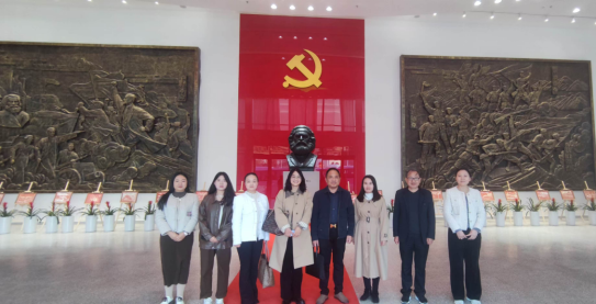 方婷婷首先带领白彬一行来到马克思主义学院思想政治教育中心,参观了中国革命史馆、中国共产党史馆、大别山革命史馆和列宁号故事馆,回望了党领导全国各族人民英勇奋斗、不怕牺牲,实现民族独立、人民解放的光辉历程,沉浸于红色文化之中,并留下珍贵的合影作为纪念。