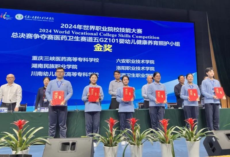 在此之前,护理与康养学院参赛队伍在婴幼儿健康养育照护赛项争夺赛中同样收获金奖。