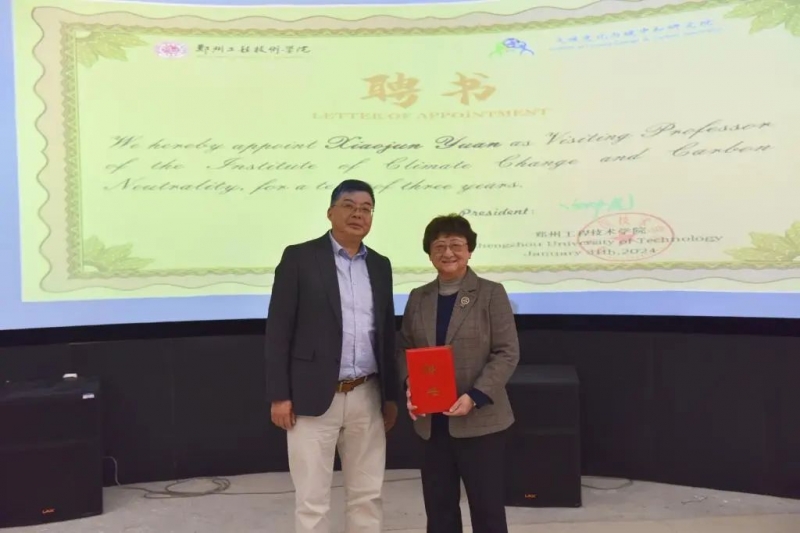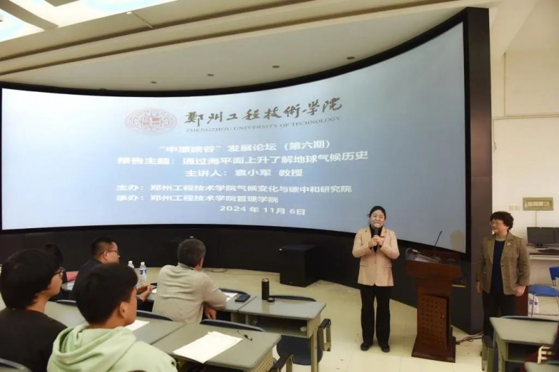 11月6日,由郑州工程技术学院气候变化与碳中和研究院主办,郑州工程技术学院管理学院承办的“中原碳谷发展”系列论坛(第六期)在郑州工程技术学院博识楼成功举办。出席论坛的领导和专家有郑州工程技术学院校长白仲虎,郑州工程技术学院学术副校长姜冬梅,哥伦比亚大学教授、郑州工程技术学院客座教授袁小军,气候变化与碳中和研究院、郑州工程技术学院客座教授刘鹏利、刘庆强,气候变化与碳中和研究院、郑州工程技术学院客座副教授张红梅、耿洁。活动由郑州工程技术学院管理学院党总支副书记张彩虹主持。300余名郑州工程技术学院师生现场聆听报告。郑州工程技术学院校长白仲虎为客座教授袁小军教授颁发聘书并发表讲话。白校长首先对袁小军教授的到来表示欢迎和感谢。他指出,“中原碳谷发展”论坛旨在深入探讨碳中和背景下的区域发展战略,促进学术交流与合作。他强调,碳中和对于全球气候变化的重要性,并指出中原地区在碳谷建设中的潜力与挑战。他提出,郑州工程技术学院将致力于打造碳中和研究与教育的高地,为中原地区乃至全国的碳减排和绿色发展贡献力量。