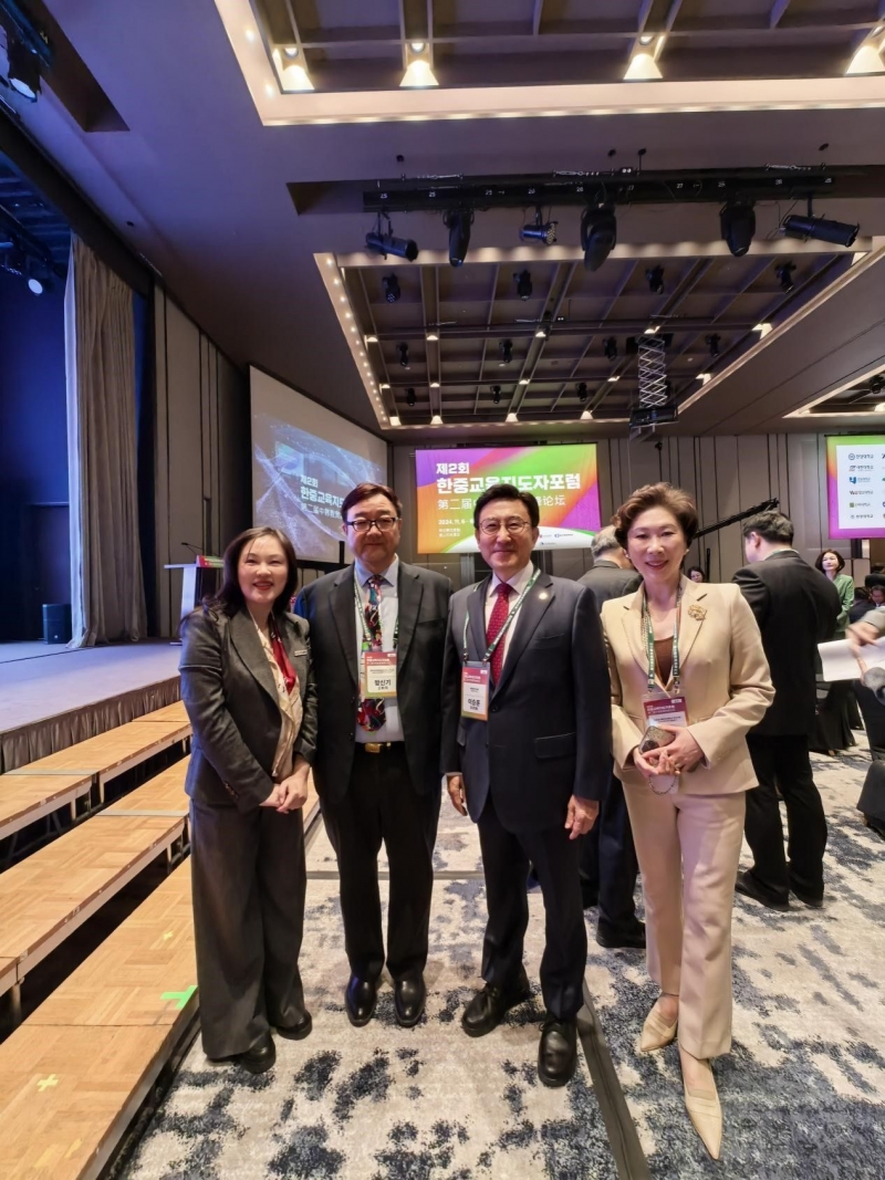 2024年11月6日至8日,由中国民办教育协会和韩国大学法人协议会共同主办的第二届中韩教育高峰论坛在韩国釜山成功举行。中国民办教育协会会长刘林、韩国大学法人协议会会长鲁赞容、韩国教育部副部长吴锡焕、中国驻釜山副总领事于瓅斐、釜山广域市市长朴亨埈出席了会议。郑州升达经贸管理学院董事长王新奇博士、实训与设备管理处处长程敏姿受邀参加了此次盛会。