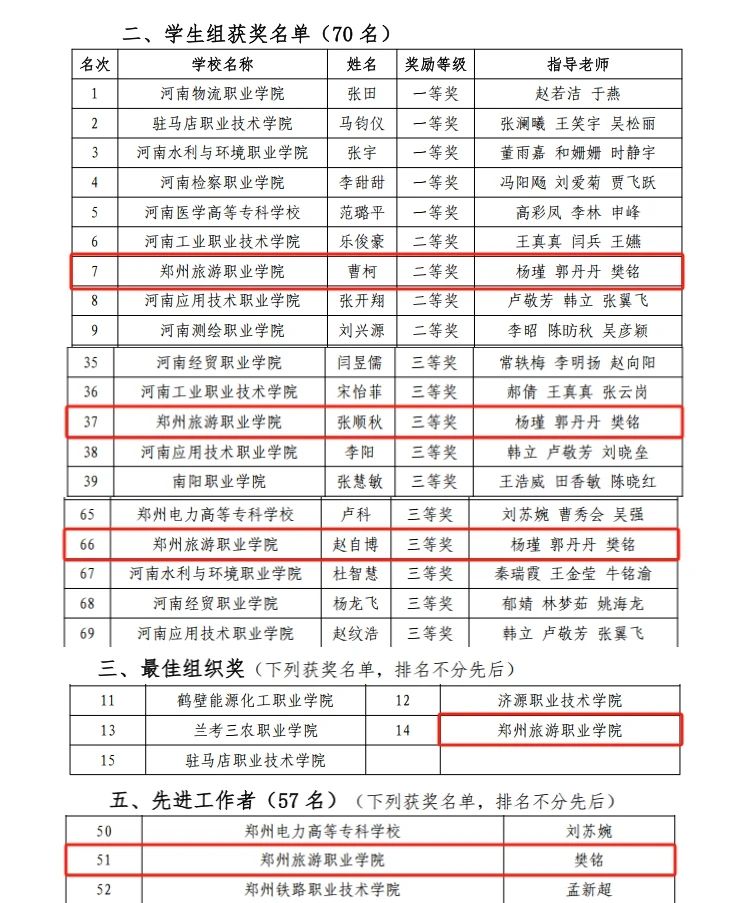 此次大赛激发了学生对信息素养学习的热情和兴趣,也展现了郑州旅游职业学院大学生积极自信的青春风采,进一步提升了师生的信息素养能力。郑州旅游职业学院也将以本次获奖为契机,继续秉承“以赛促教、以赛促学、以赛促练”的理念,进一步加强师生信息素养教育,为学校全面高质量发展作出贡献。