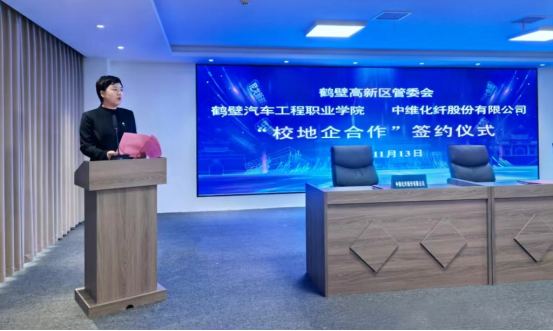 为深化校企合作、产教融合,进一步提升人才培养质量与服务区域经济社会发展能力,11月13日上午,鹤壁汽车工程职业学院与鹤壁高新区管委会、中维化纤股份有限公司举行“校地企合作”签约仪式。