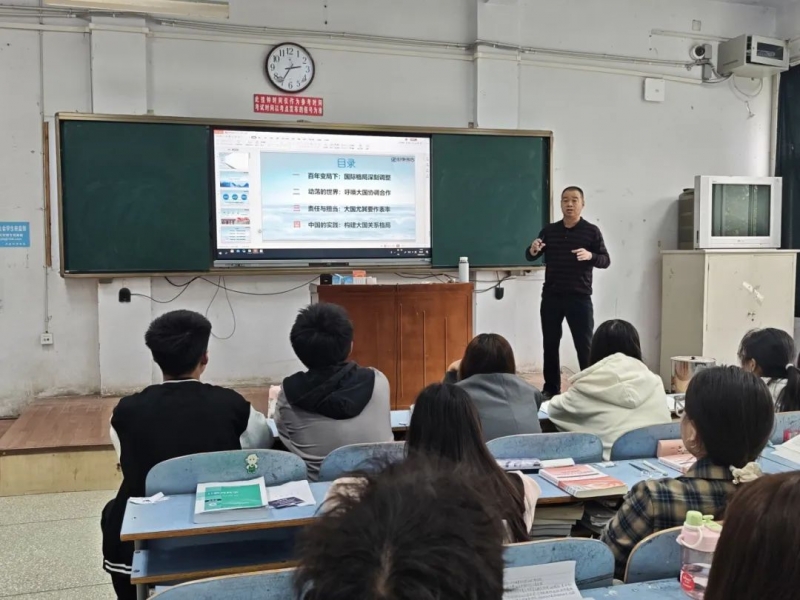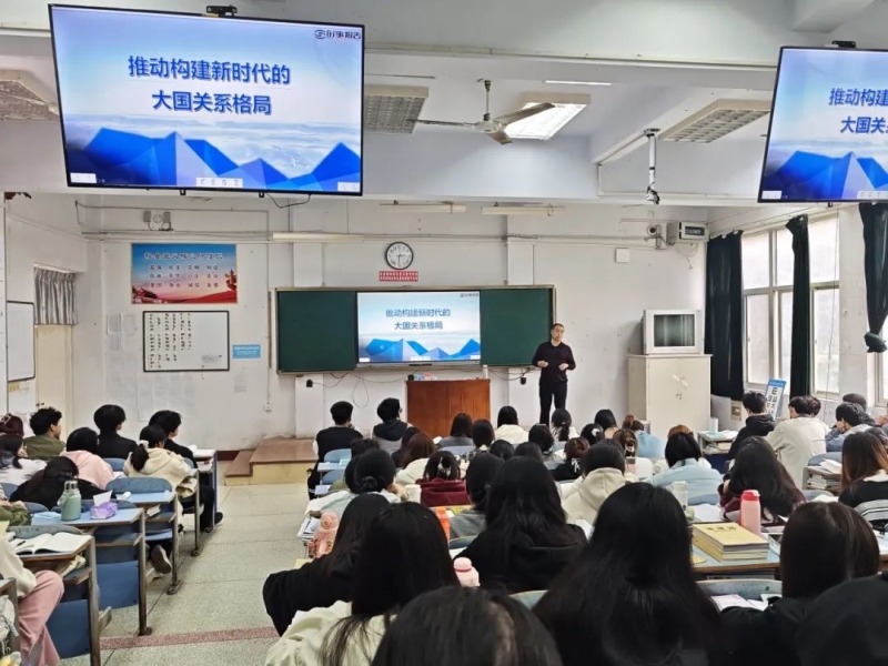 秦玖刚以《推动构建新时代的大国关系格局》为题,结合当前国际形势的发展变化,从“百年变局下:国际格局深刻调整;动荡的世界:呼唤大国协调合作;责任与担当:大国尤其要作表率;中国的实践:构建大国关系格局”四个方面进行了详细解读,深入浅出地剖析了当前国际形势的复杂性,以及中国在处理大国关系中的原则立场和实际行动。他说,当今世界正面临百年未有之大变局,国际格局深刻调整,动荡的世界呼唤大国协调合作。作为负责任的大国,中国始终秉持和平、合作、共赢的外交政策,致力于推动构建人类命运共同体。最后,他鼓励新时代青年学子要积极培养国际视野和人文关怀,锻炼敏锐的洞察力、判断力和行动力。要将个人成长成才的理想与祖国发展的目标紧密相连,将小我融入大我,服务强国建设,实现中华民族伟大复兴的中国梦。 课后,同学们纷纷表示,一定铭记时代赋予的使命,紧跟世界发展大势,积极促进世界和平与发展,以实际行动贡献自己的青春力量。