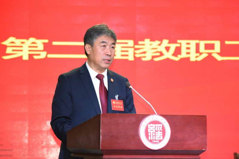 司林胜代表校党委、行政,对大会的胜利召开和取得的成果表示祝贺。他指出,这次“双代会”是在全校上下认真学习贯彻习近平新时代中国特色社会主义思想和党的二十届三中全会精神、全国教育大会精神,全面落实立德树人根本任务的背景下召开的一次重要会议,也是在全面深化学校学科治理体系综合改革、加快推动高质量内涵发展的背景下召开的一次重要会议。司林胜表示,“双代会”是教职工行使民主权利,参与学校管理、监督、决策的重要形式,是党委密切联系职工群众的重要途径,也是现代大学治理体系的重要组成部分。广大代表要发挥好桥梁纽带作用,聚焦学校中心工作,示范引导广大教职工时刻关注、深刻理解、紧紧跟随、全力投入学校的学科治理体系综合改革,积极为学校发展献计献策、做出贡献。