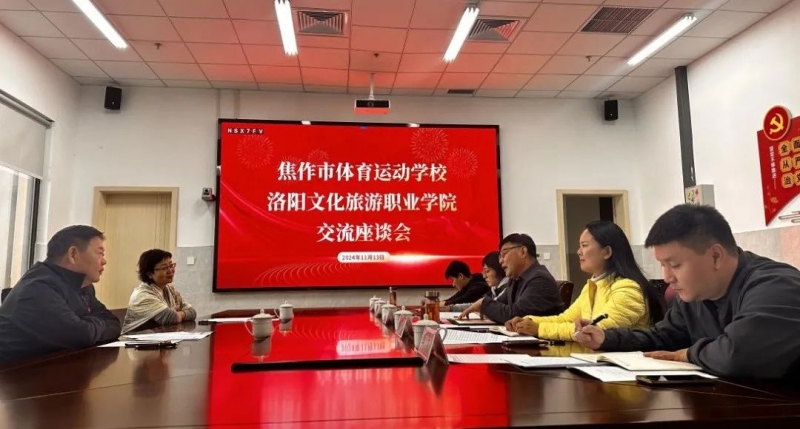 11月13日上午,焦作市体育运动学校党支部书记许永红、校长杨青华一行来到洛阳文化旅游职业学院进行交流学习。洛阳文化旅游职业学院党委副书记、校长张家森,党委副书记、纪委书记刘铮出席座谈。