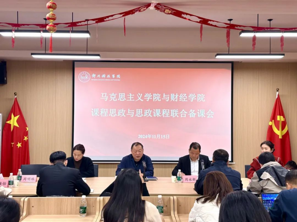 为深化课程思政与思政课程协同育人效应,充分发挥高校各类课程的育人功能。11月15日上午,郑州科技学院财经学院与马克思主义学院协同开展课程思政与思政课程集体备课会。马克思主义学院院长于慎鸿、财经学院副院长周永新、两院教研室主任及教师代表参加备课会,备课会由财经学院副院长周永新主持。