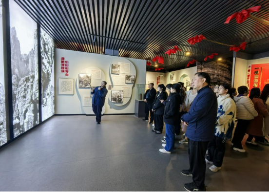 在讲解员的引导下,老师们沿着565米长的展线,依次参观了“千年旱魔 时代抗争——红旗引领 创造奇迹——英雄人民 太行丰碑——山河巨变 实现梦想——继往开来 精神永恒”五个主题展,一幅幅图片、一件件实物,一段段感人事迹,生动再现了林县人民在中国共产党的领导下历时十年在太行山腰修建全长1500公里被称为“人工天河”的红旗渠的伟大壮举,再现了林县人民战太行、出太行、富太行、美太行的动人史实。通过参观学习,老师们为林县人民不认命、不服输、战天斗地“重新安排林县河山”的英雄气概和大无畏精神所感动,更加深刻理解了“自力更生、艰苦创业、团结协作、无私奉献”的红旗渠精神的深刻内涵和时代价值。随后,老师们走“红飘带”,登“水长城”,前往红旗渠咽喉工程——青年洞参观,亲身感受红旗渠工程的宏伟与感悟修建红旗渠的艰辛,并在青年洞前重温入党誓词。