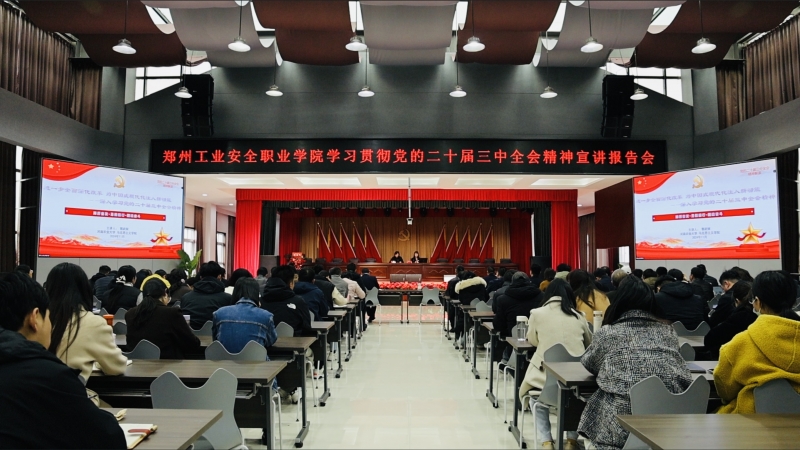 11月19日下午,郑州工业安全职业学院举行学习贯彻党的二十届三中全会精神宣讲报告会,会议邀请省委教育工委宣讲团成员、河南农业大学马克思主义学院副教授郭武轲作专题报告。报告会主会场设在新郑校区,金水校区设分会场。在校领导班子成员、中层干部、全体教职工及学生代表参加了报告会。报告会由校长黄磊主持。